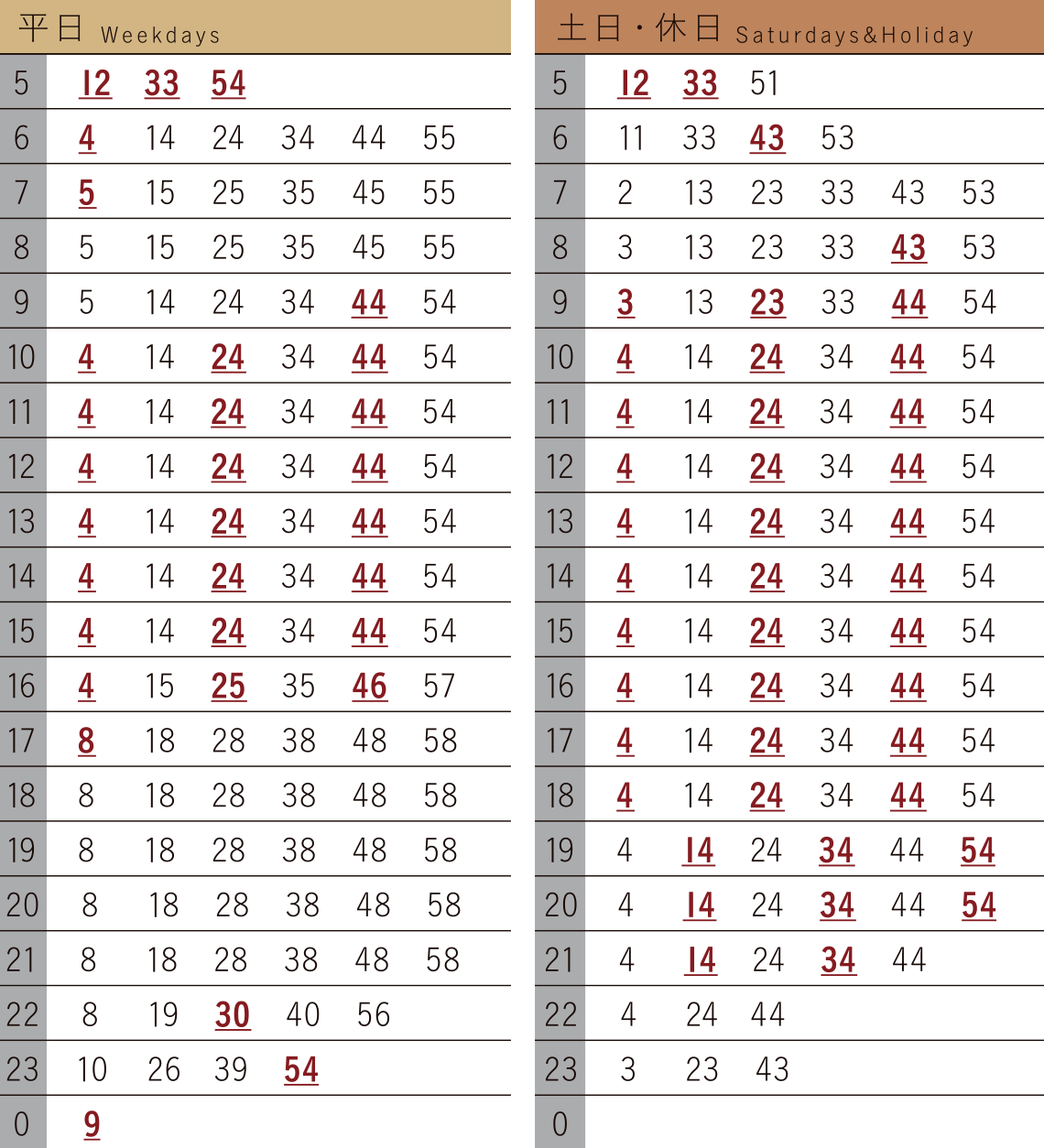 ※平日6時台~21時台、土日・休日7時台~20時台国分寺方面