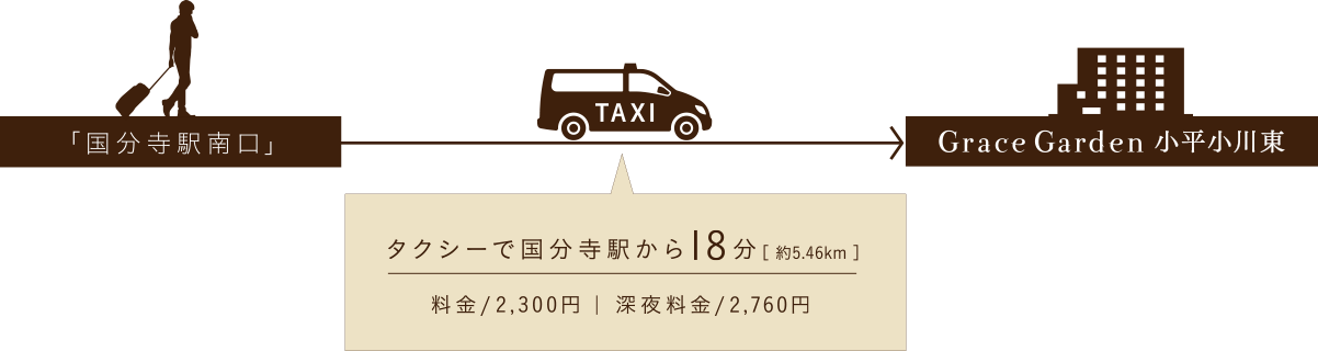 〈 荷物が多い際など、駅からのご帰宅はタクシー利用も便利です 〉