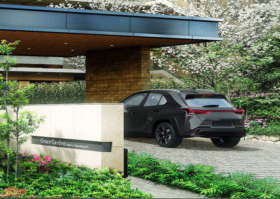 ホテルライクな車寄せがカーライフを支える
