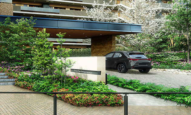 ホテルライクな車寄せがカーライフを支える