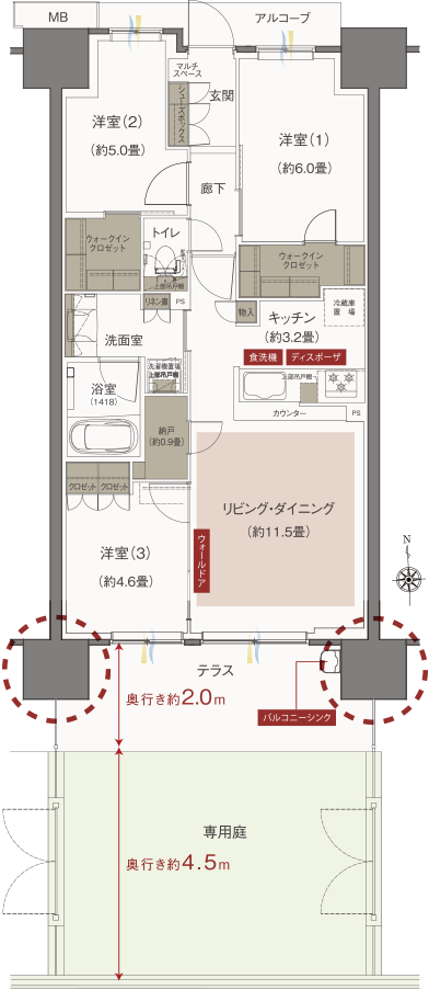POINT5子育て・ペットにもうれしい、プライベートガーデン付き住戸。