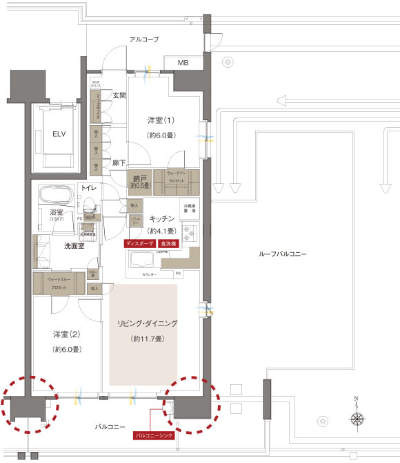 ルーフバルコニー面積/ 42.91㎡ (約12.98坪)