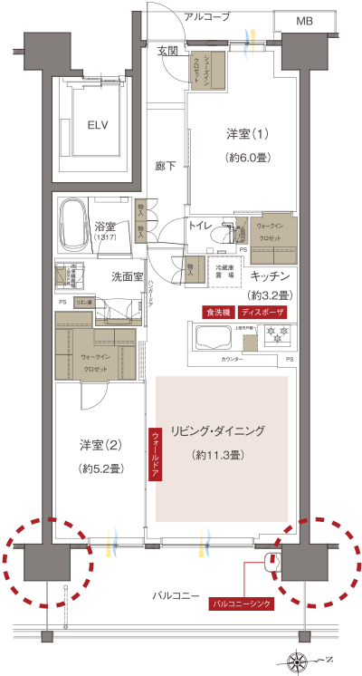 バルコニー面積/ 11.80㎡ (約3.56坪)